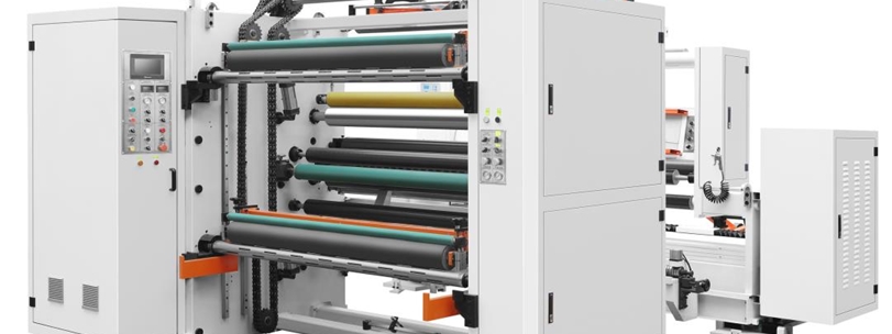 本机适用于各种纸张及不干胶材料的分切复卷,最高分切速度400米/分钟。